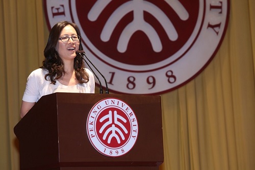 教师代表、电子学系2011级本科生班主任马黎黎老师首先发言。马黎黎与同学们一起回顾了过去几年的学习时光,引发了同学们的共鸣。她希望同学们要保有自己的理想、生活的激情、宽容的心和健康的身体,并预祝毕业生学业进步、事业有成。