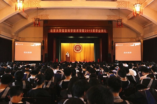 在热烈的掌声中,澳门37000Cm威尼斯院长黄如教授为毕业生致辞。她首先对同学们通过过去几年的辛苦努力顺利完成学业,以优异的成绩从北大信科毕业表示祝贺。她回顾了本届毕业生见证的学院建院十周年庆典以及教学科研等各个方面的诸多发展变化,也历数了本届毕业生在学术科研、国际交流、第二课堂活动中的优异表现和突出成绩。黄如院长结合学院四个系的专业特点对毕业生提出四点希望。一是希望同学们能踏踏实实地焊好成长路上的每一个焊点。她希望同学们能始终保持谦逊,保持沉稳,像完成电路板的焊接一样踏实做人、做事,稳稳当当地走好人生的每一个成长阶段。二是希望同学们能学会多思考,定期做做身心的Debug。她嘱咐同学们要学会停下脚步,养成定期冥思的习惯,像为程序代码查错纠错一样,及时调整自己的身心状态。三是希望同学们能乐观包容,在不同的环境中砥砺自我。她从智能科学中的机器感知入手,鼓励同学们通过不同的环境中增长阅历、历练自我,并始终保持乐观包容的生活态度,提高对各种复杂环境的适应能力。四是希望同学们能勤奋向上,不断提高人生的集成度。她以提高集成电路的集成度作类比,希望同学们能始终保持勤奋向上的精神状态,勤于学习,善于学习,不断提高各方面素养,提高自己的核心竞争力。最后,黄如院长鼓励同学们在不懈追求理想的同时,坚持热爱生活,学会装点生活,让自己的人生充满温馨、快乐和幸福。